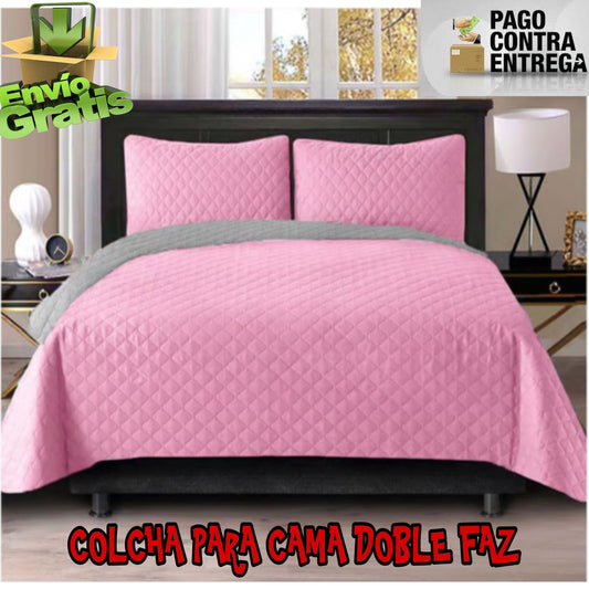 COLCHA PREMIUM DOBLE FAZ PALO ROSA-GRIS 5/5⭐️⭐️⭐️⭐️⭐️