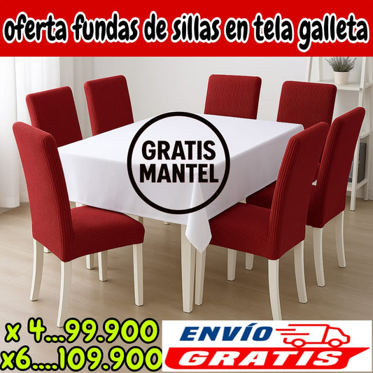 !Oferta imperdible! fundas para sillas en Tela Galleta GRATIS MANTEL